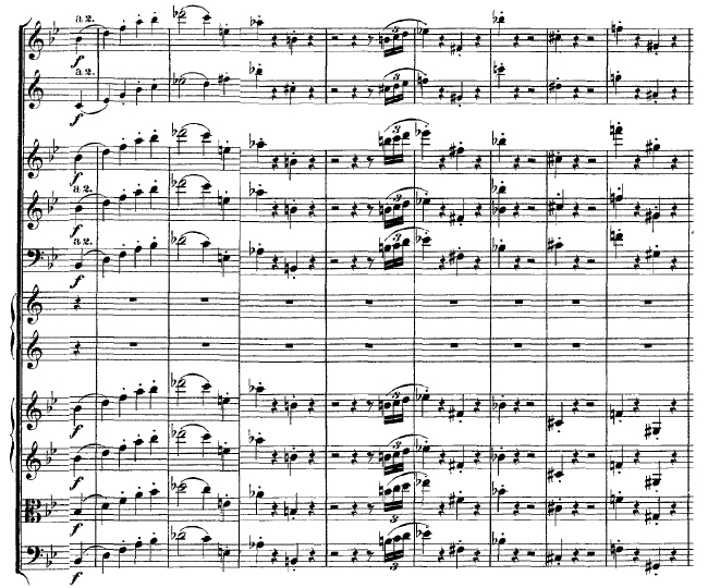 That summer I went to the Aspen festival to be immersed in everything I could learn. Knowing only a bit of Mozart, I wasn't aware of the striking moment in Symphony No. 40 (the famous G minor symphony) when the last movement's main theme comes back as a loud unison tantrum, an atonal parody of itself. At 17, I didn't know about tone rows or atonality; it just sounded like crazy anarchy barely clinging to the rhythm and general contour of Mozart's theme.