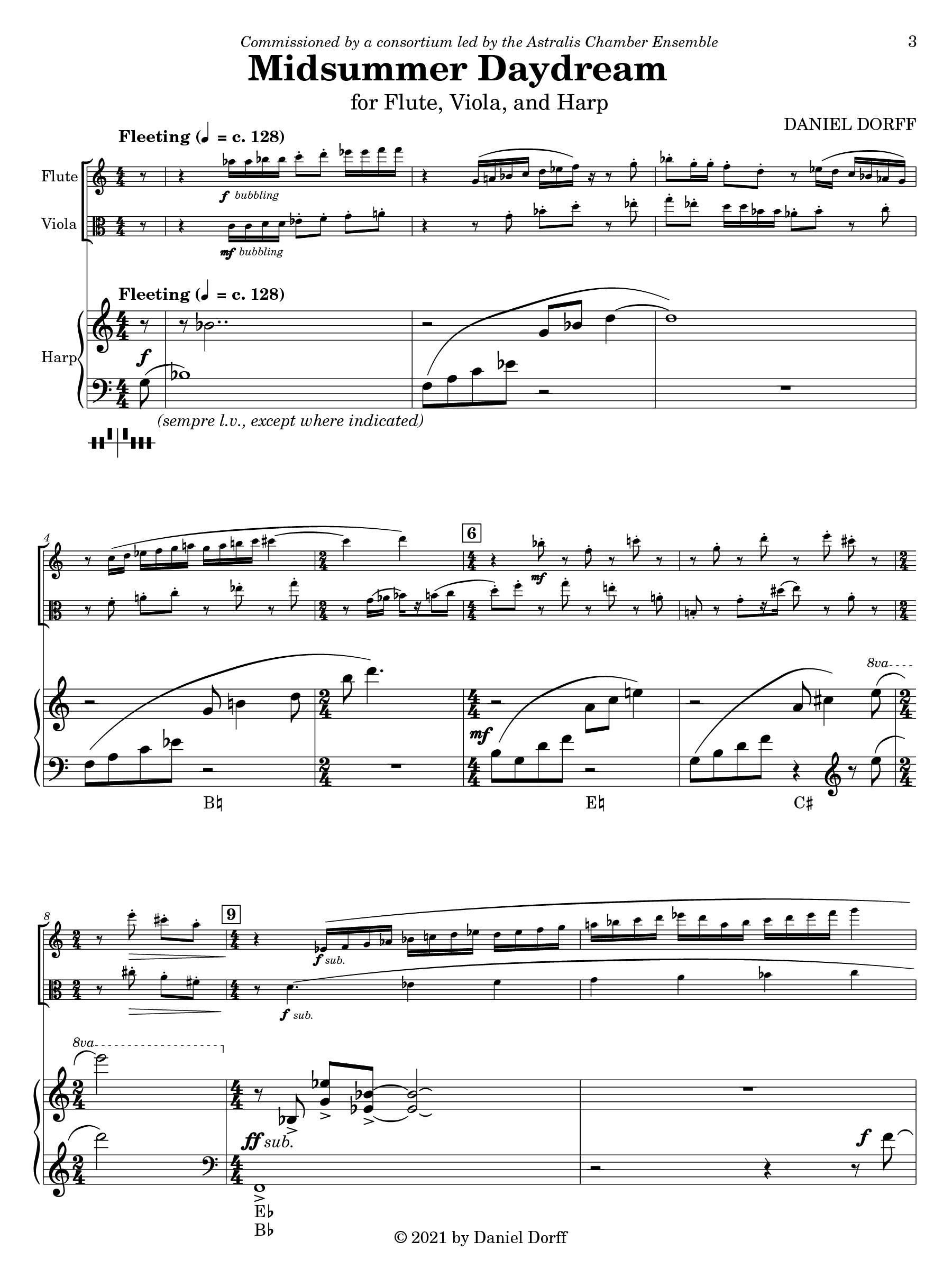 Revisiting the acoustic challenges of the original instrumentation, I've also prepared a scoring of Flute, Viola, and Harp which adds its own shade of beauty.